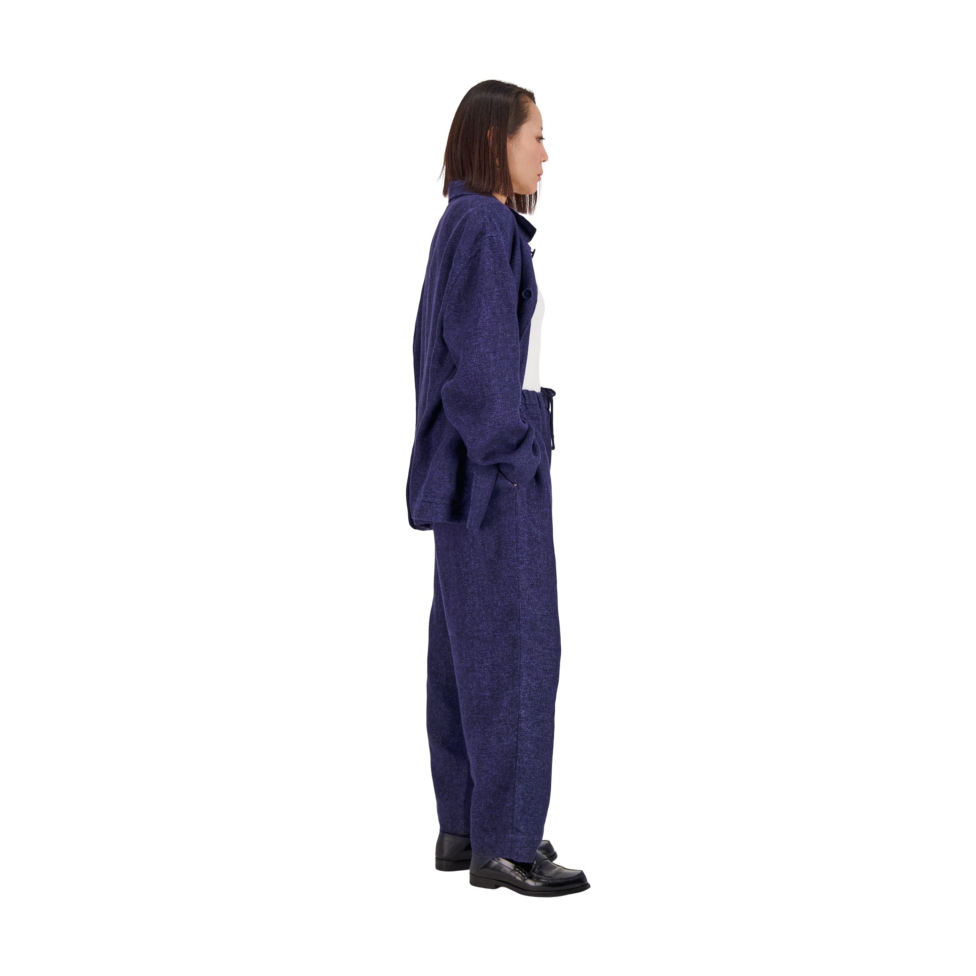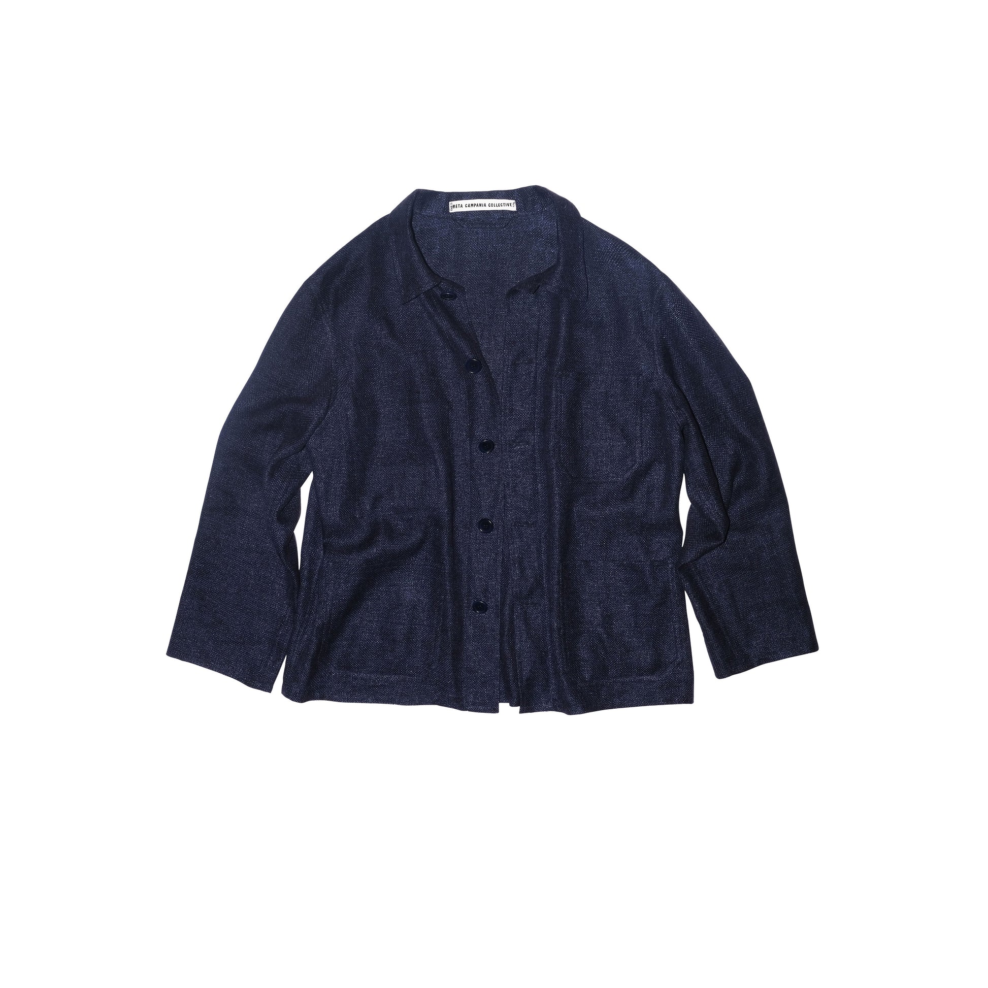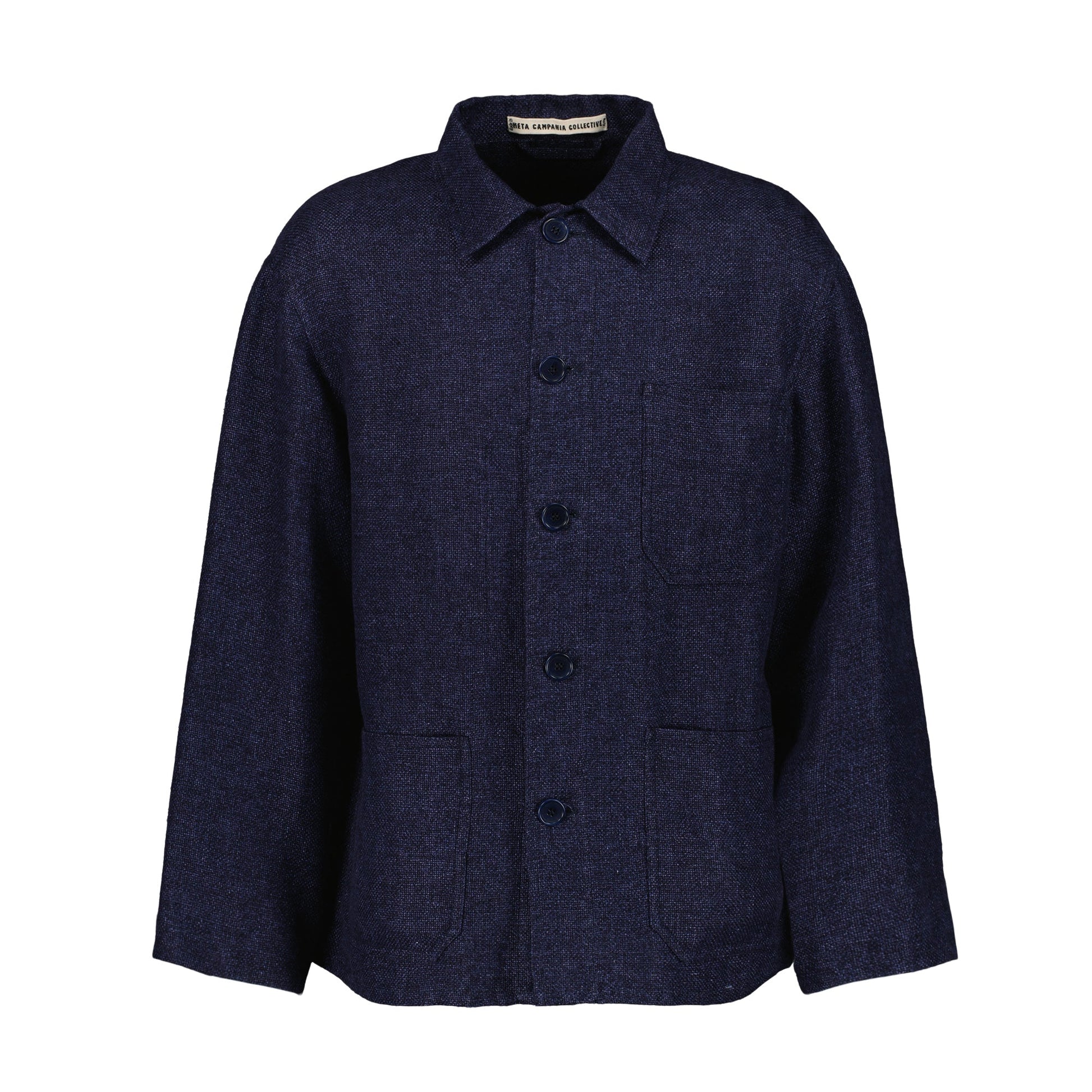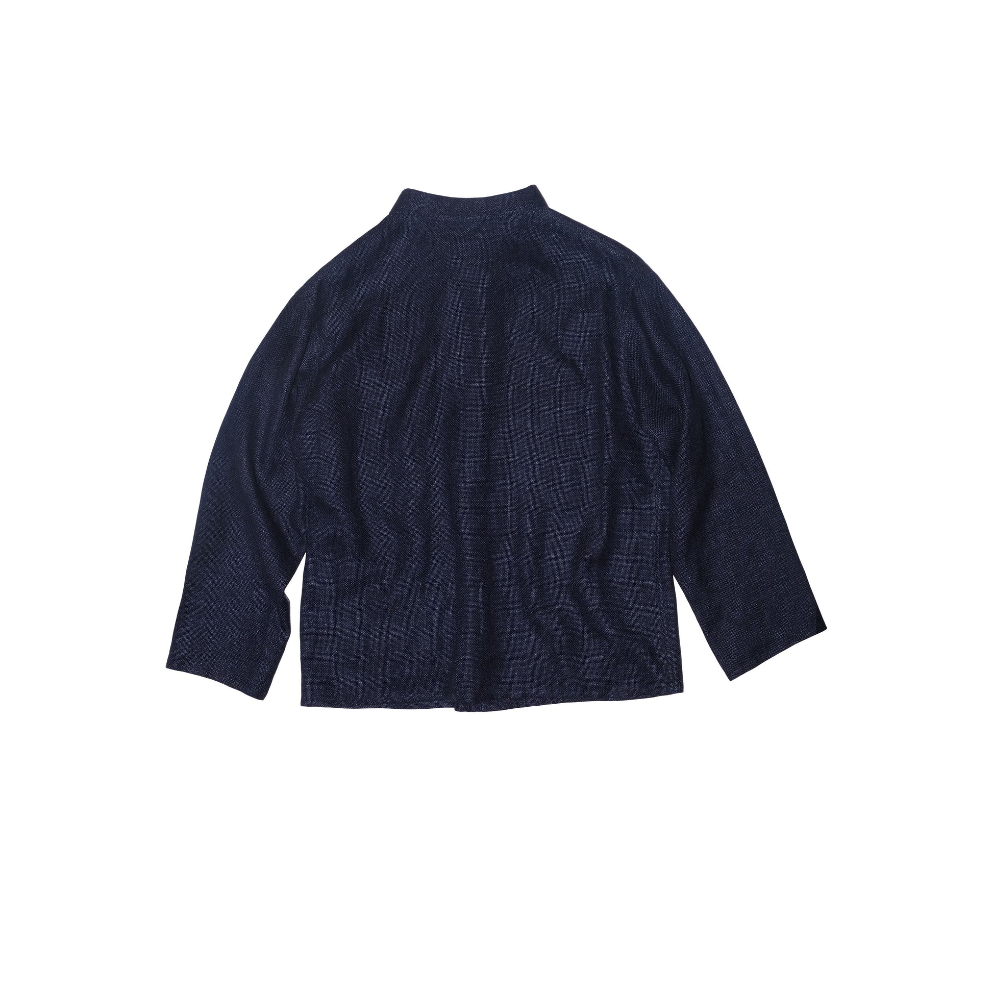 This unlined 5 button workwear jacket with a shirt collar is made of Italian open weave hemp wool oxford.
