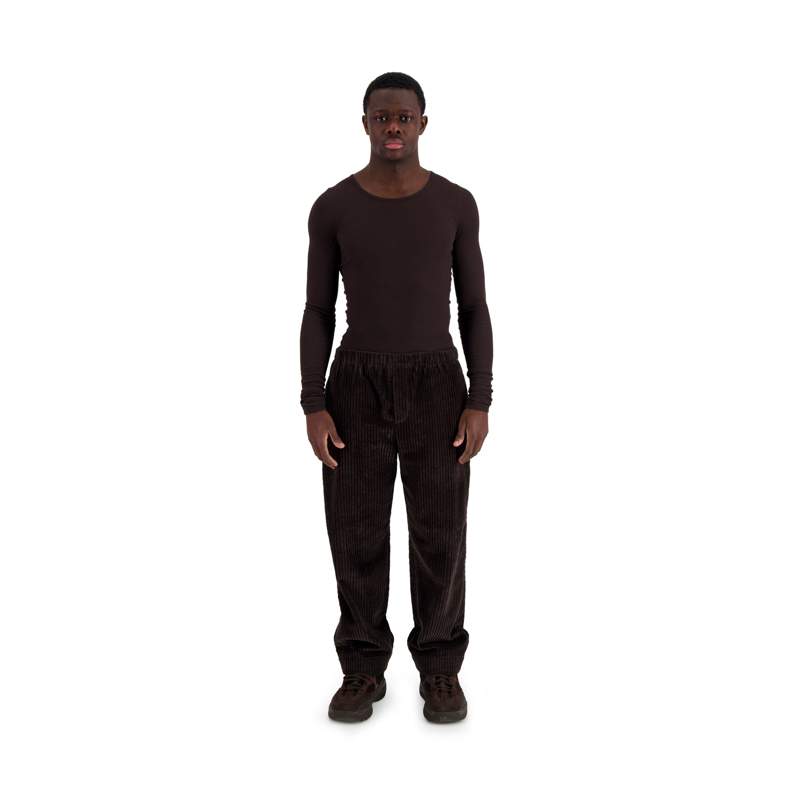 Ed Unlined Exaggerated Cotton Corduroy Drawstring Trousers Dark Chocolate Brown