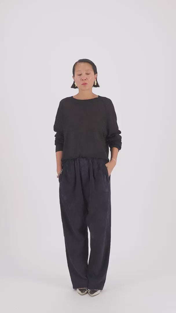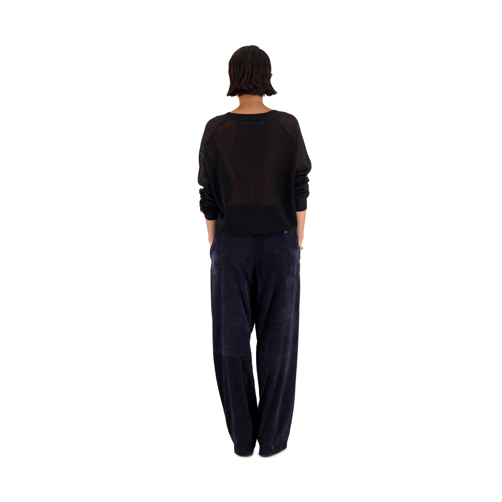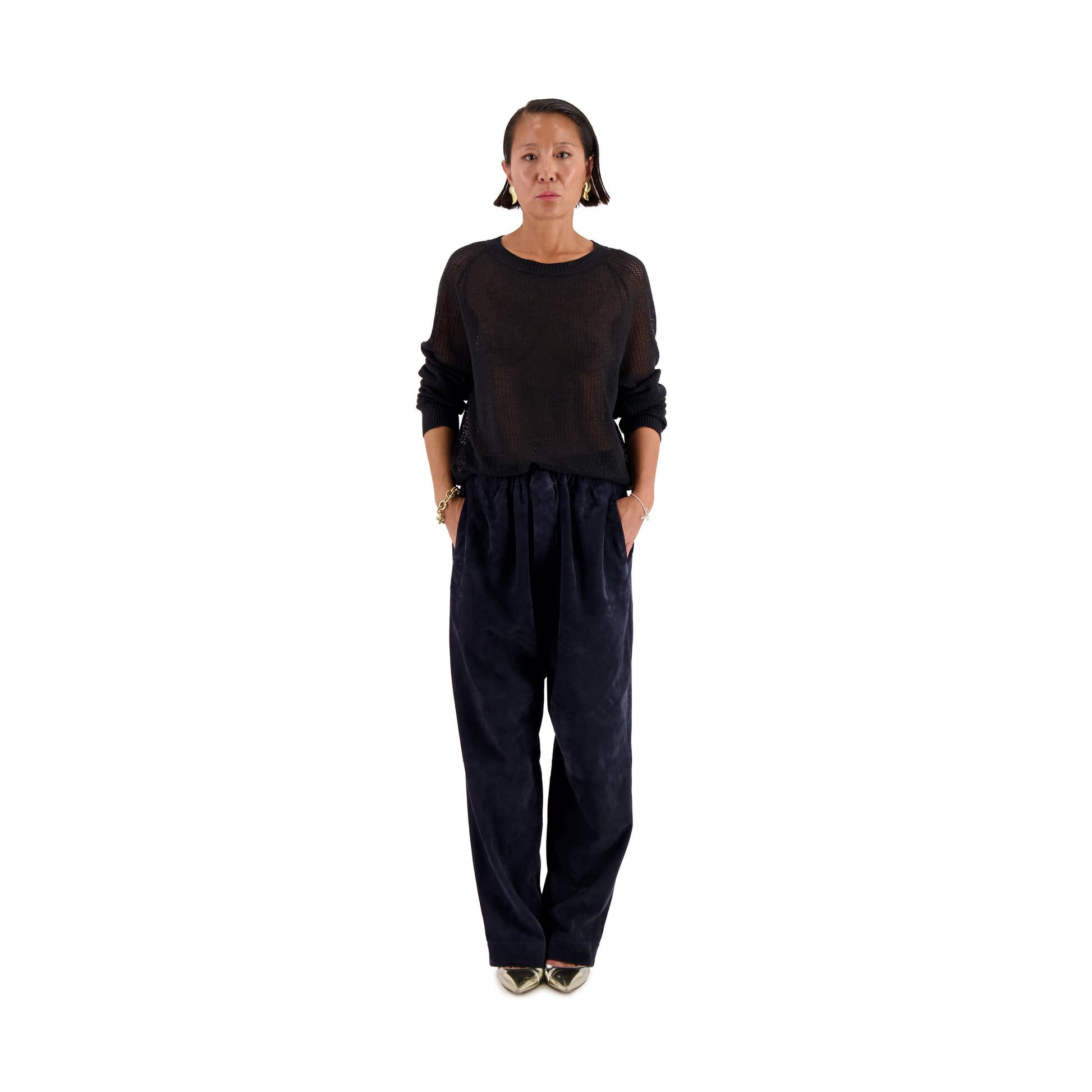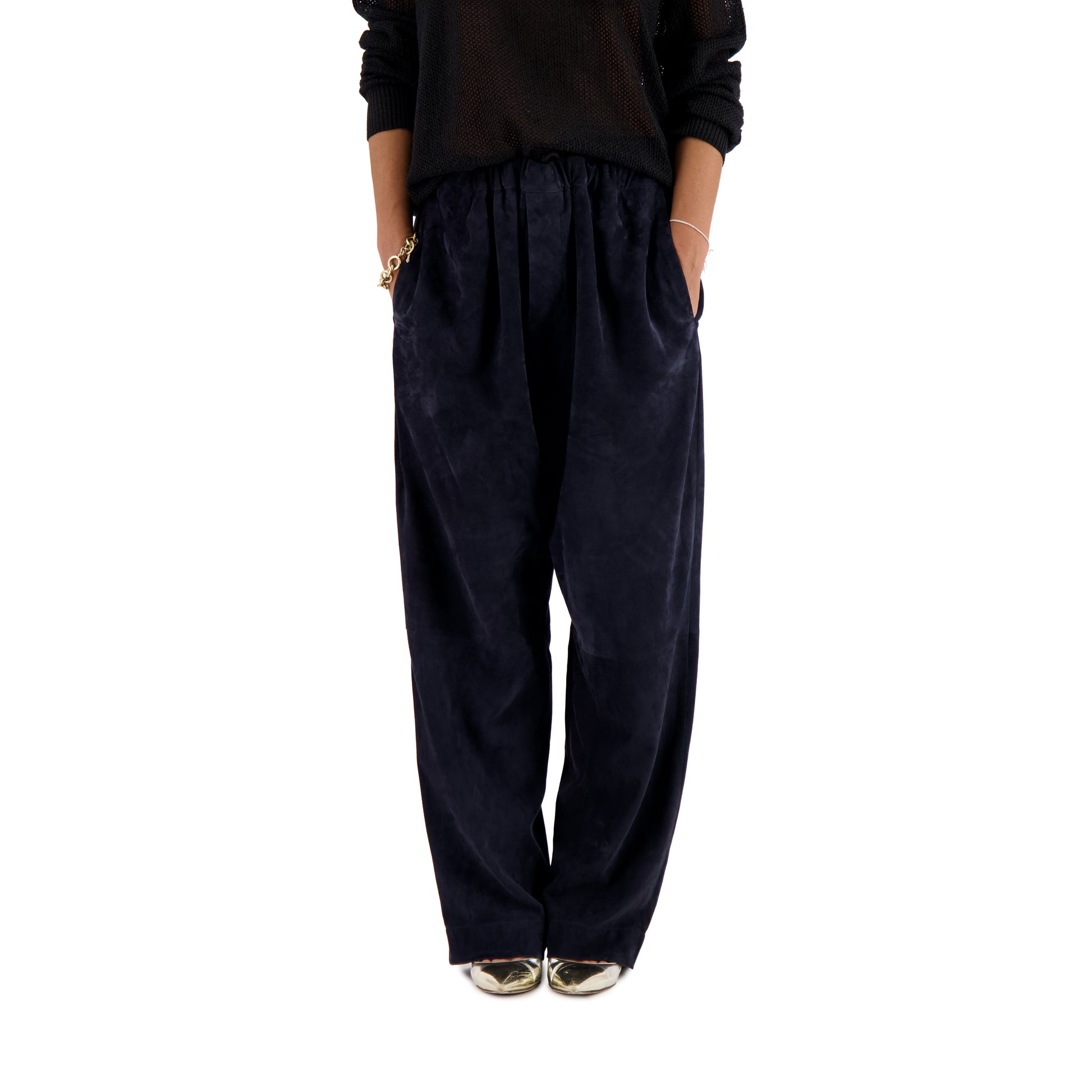 Ed Unlined Lamb Suede Drawstring Trousers Midnight Blue