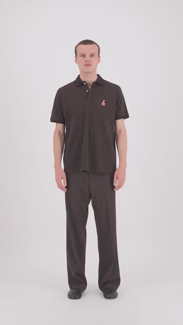Frank Ss Octopus Embroidery Jersey Cotton Piquet Polo Dark Chocolate Brown