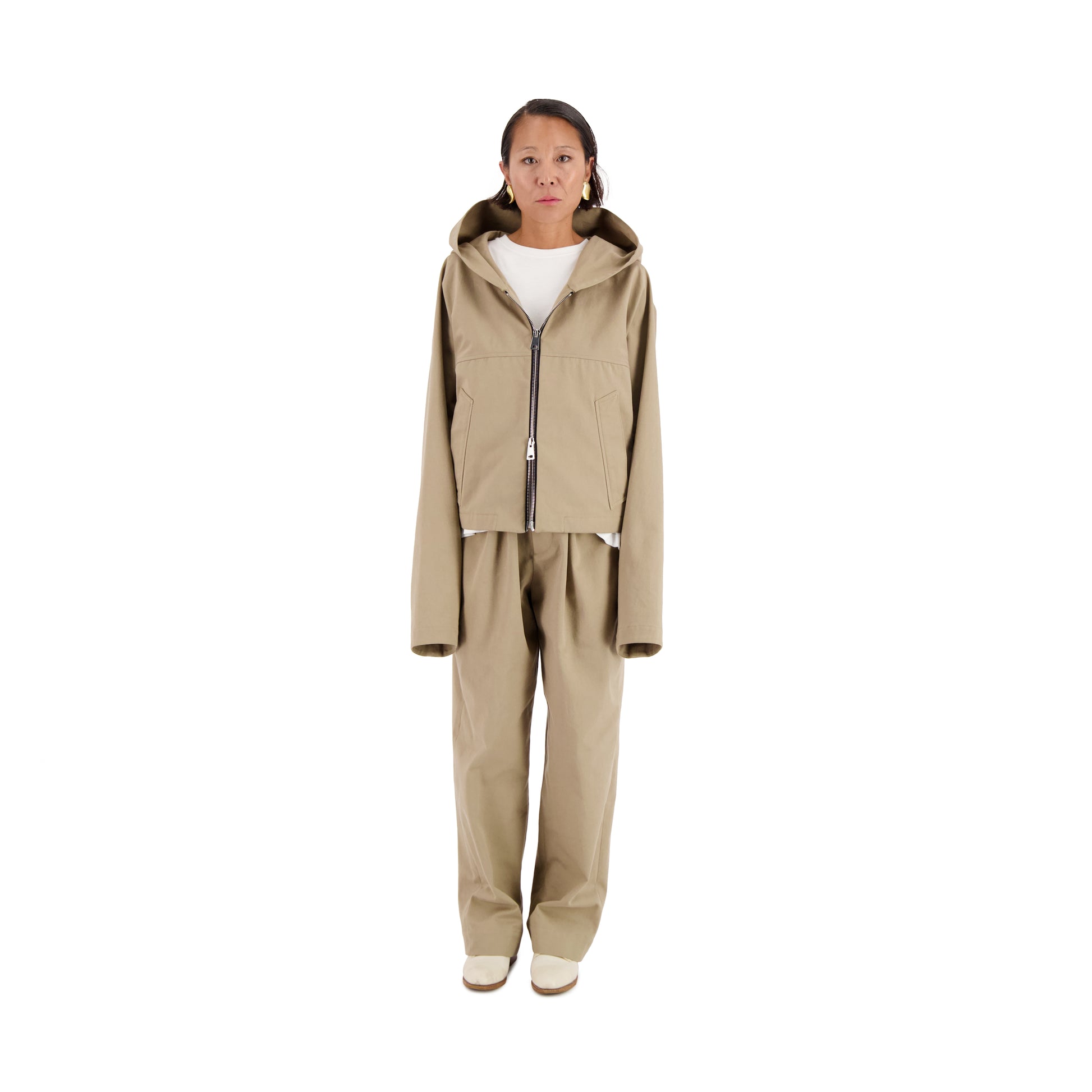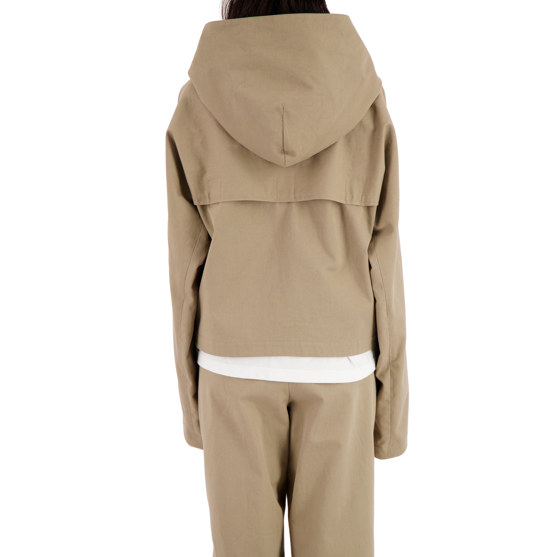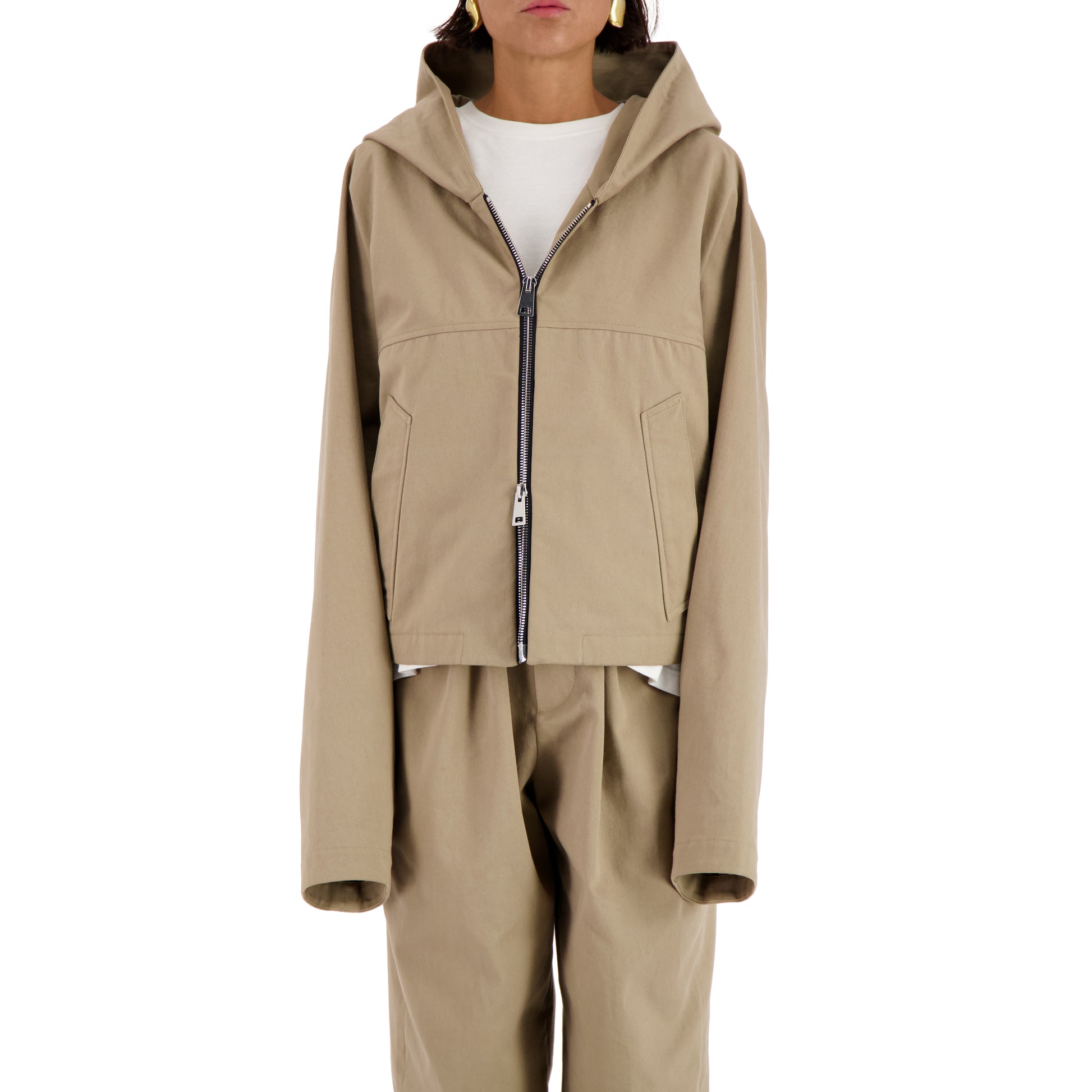 This unlined hooded blouson is made of waterrepellant Italian midweight cotton.