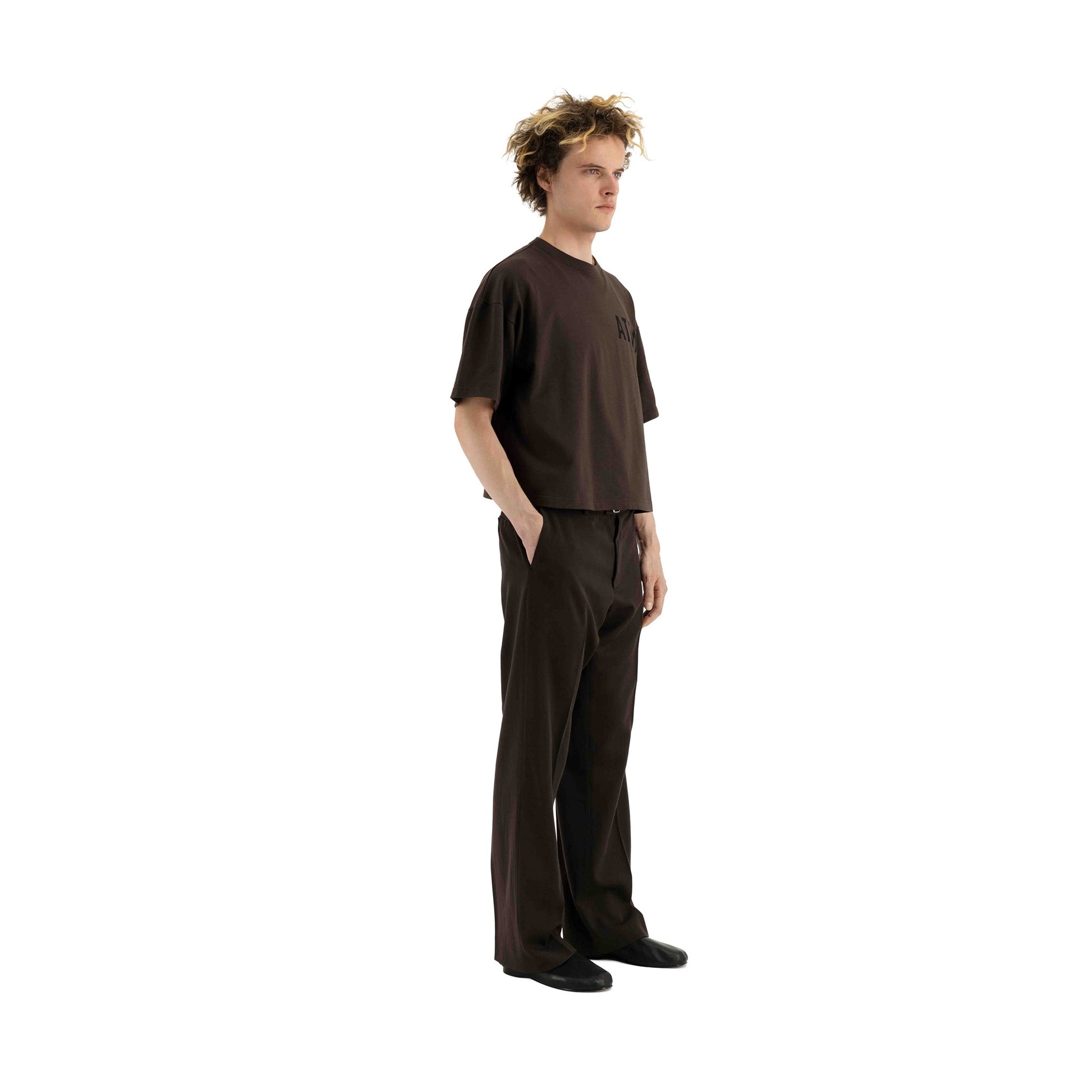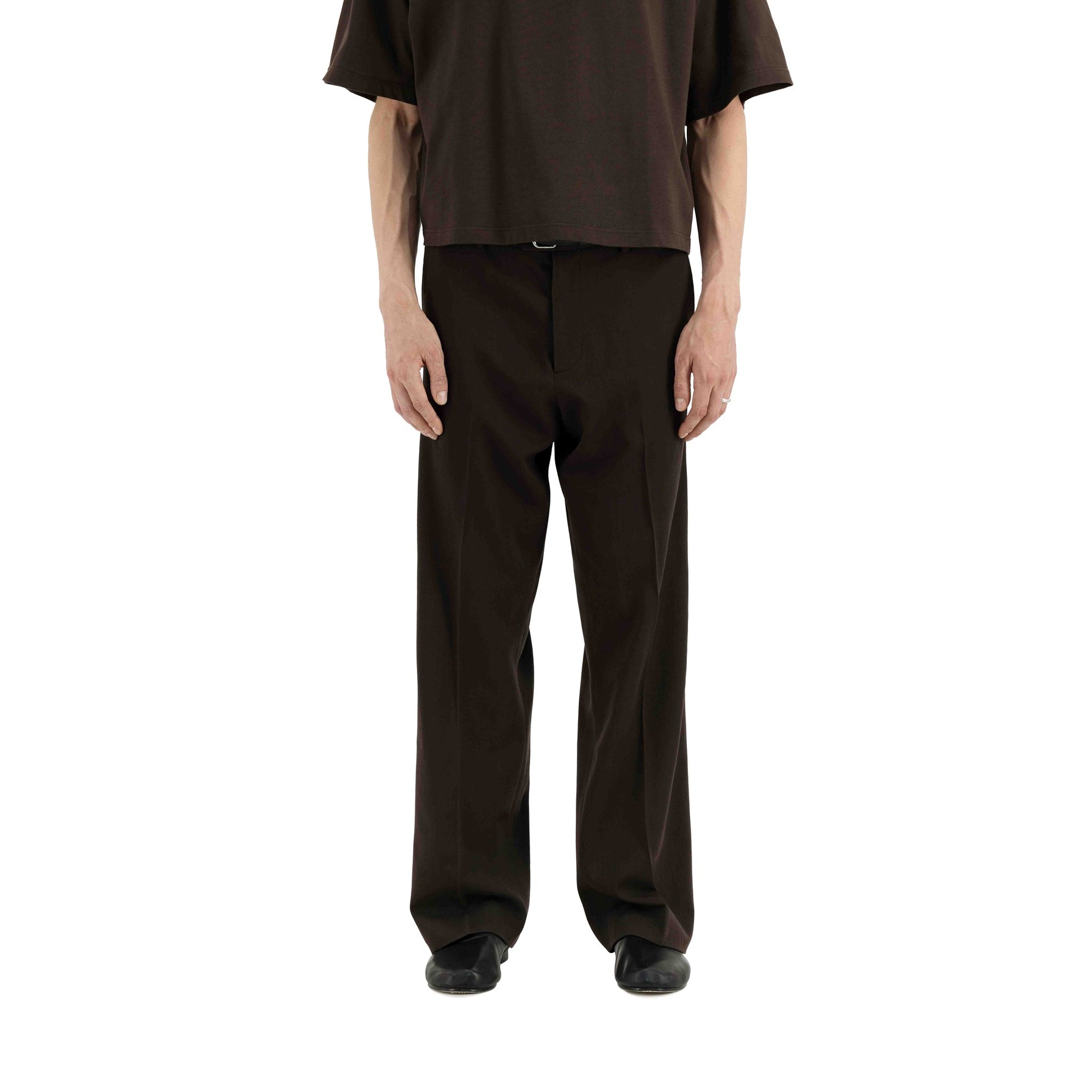 Gilles Straight Tropical Wool Twill Leg Formal Trousers Dark Chocolate Brown