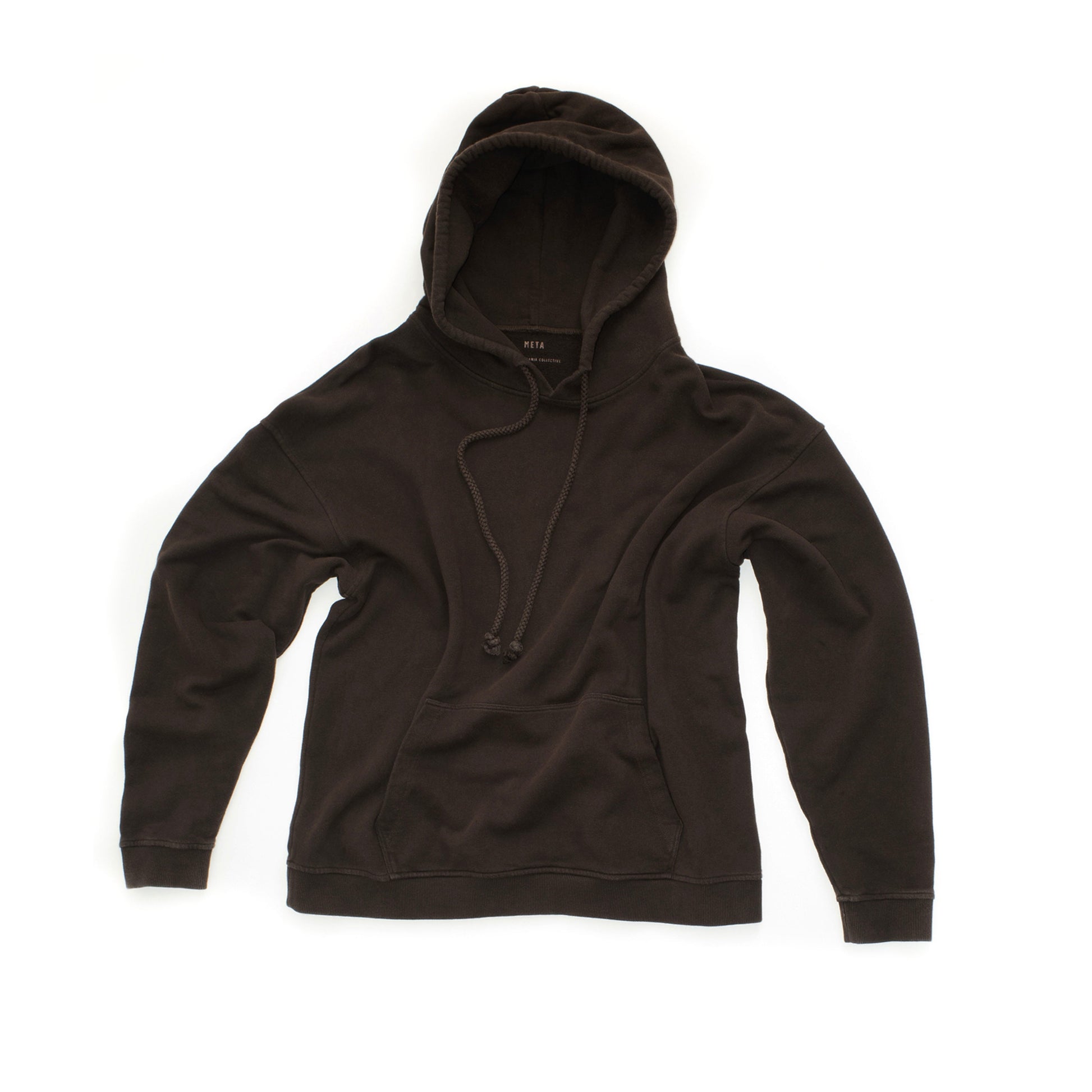 It has a cangaroo pocket above the front hem, which is ribbed.