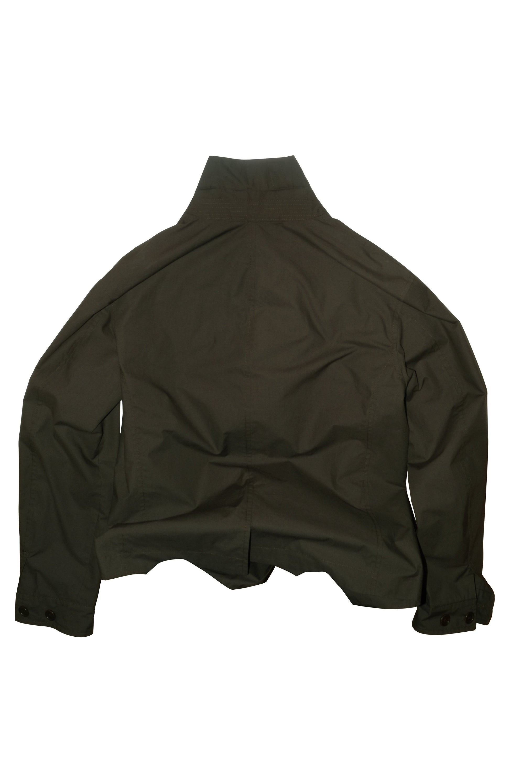 The jacket is self-lined with a central back split and zig-zag under collar stitching.