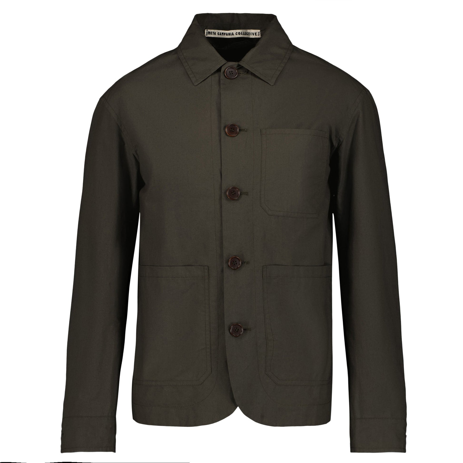 This self-lined 5-button shirt jacket with a shirt collar is made of organic Italian cotton poplin.