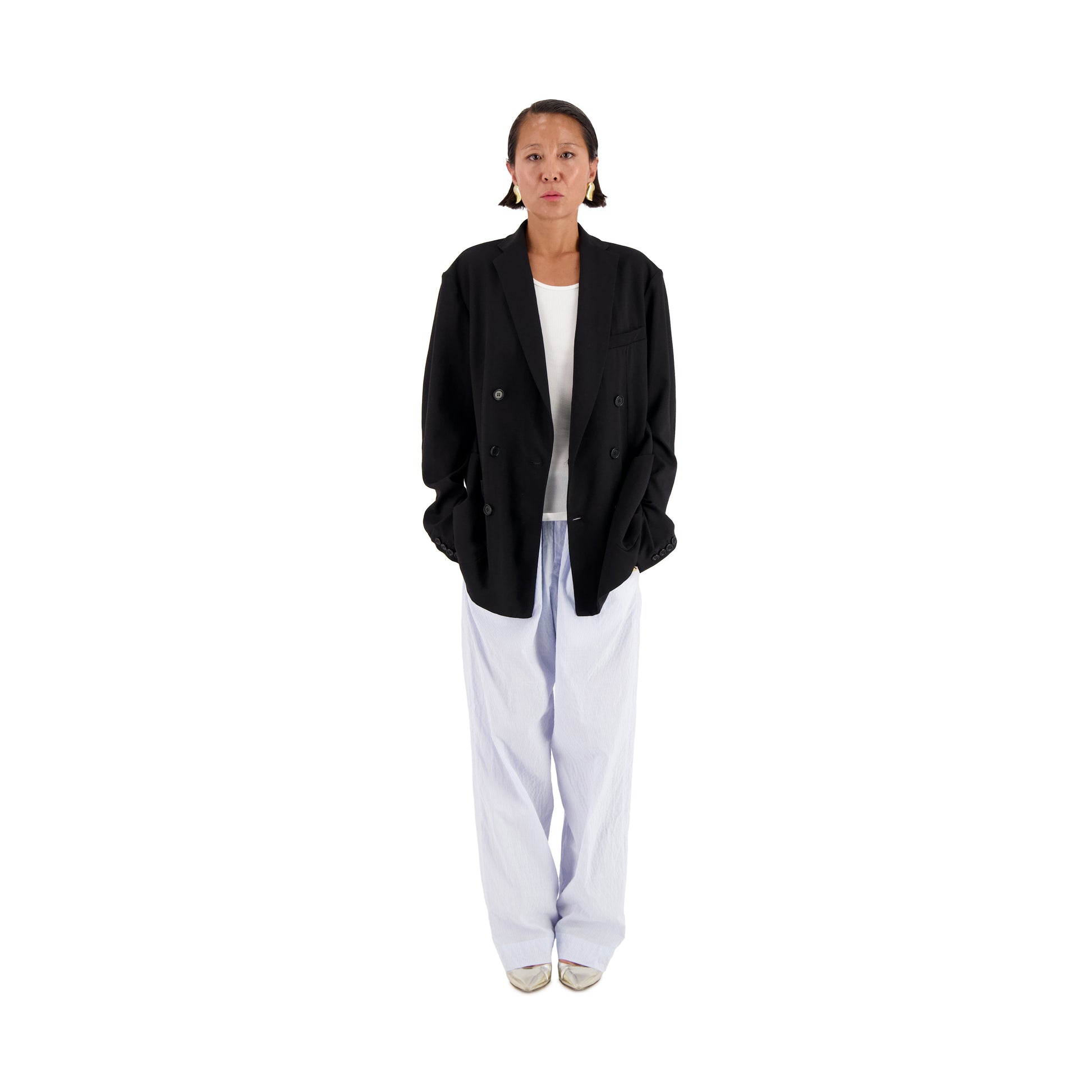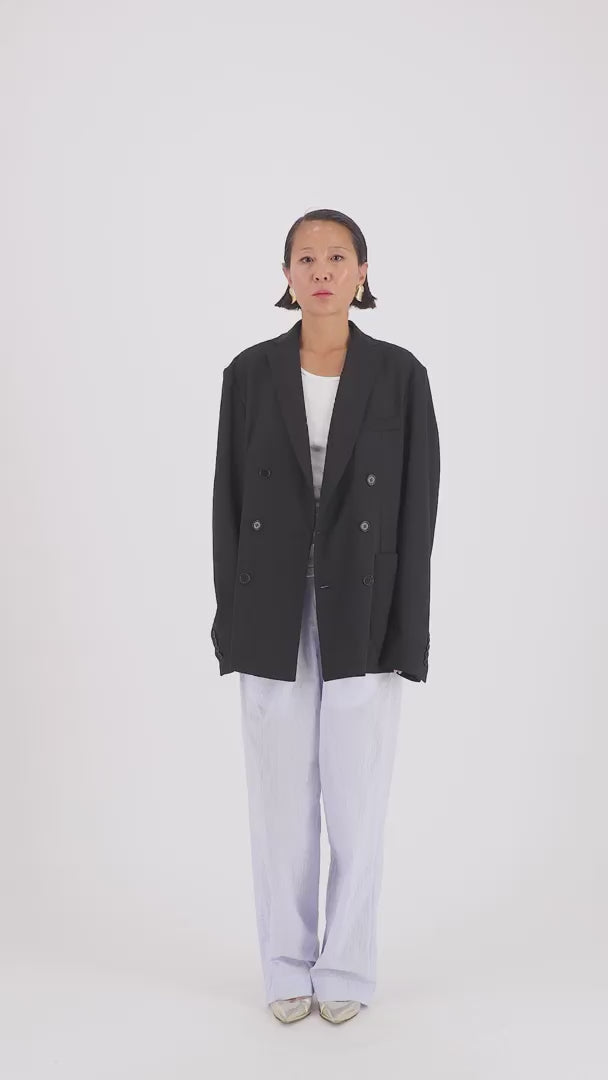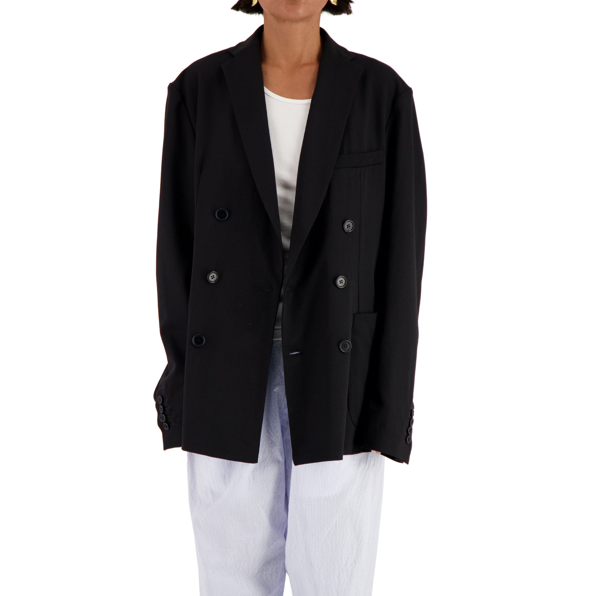 This unlined 6-button double breasted jacket is made of Italian tropical wool twill.