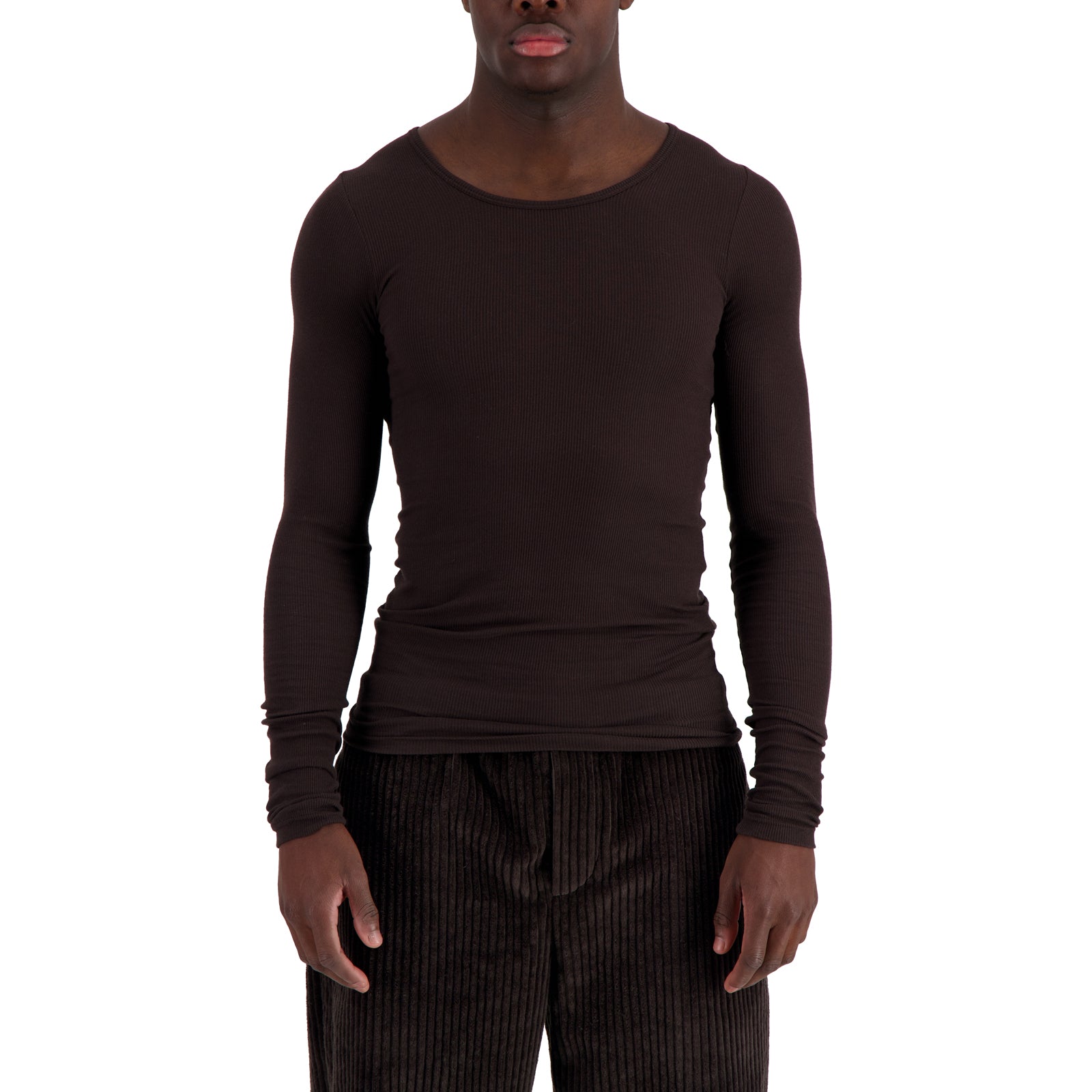 Mark Jersey Longsleeve Rib T-Shirt Dark Chocolate Brown