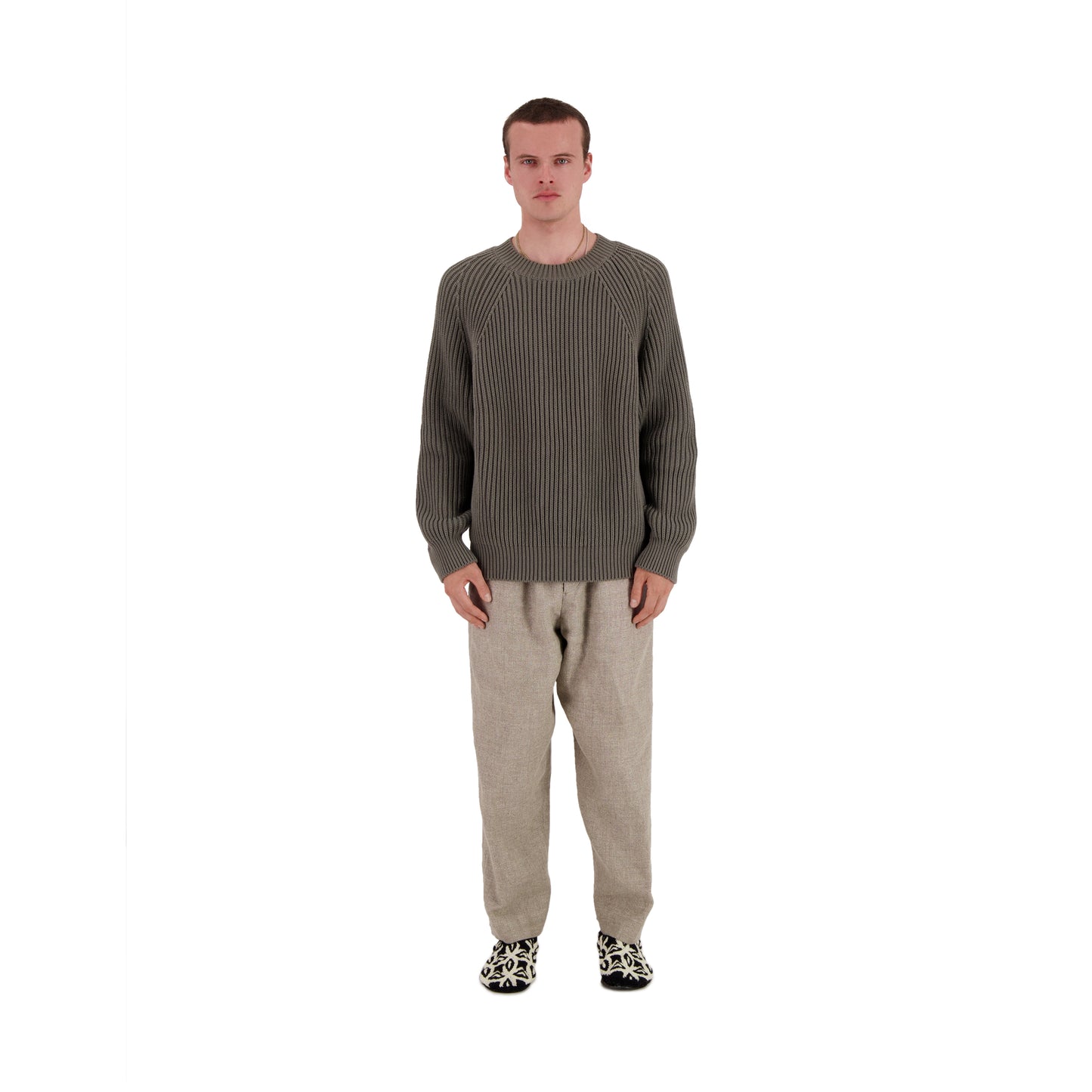 This crew neck chunky sweater is rib knit in an Italian cotton.
