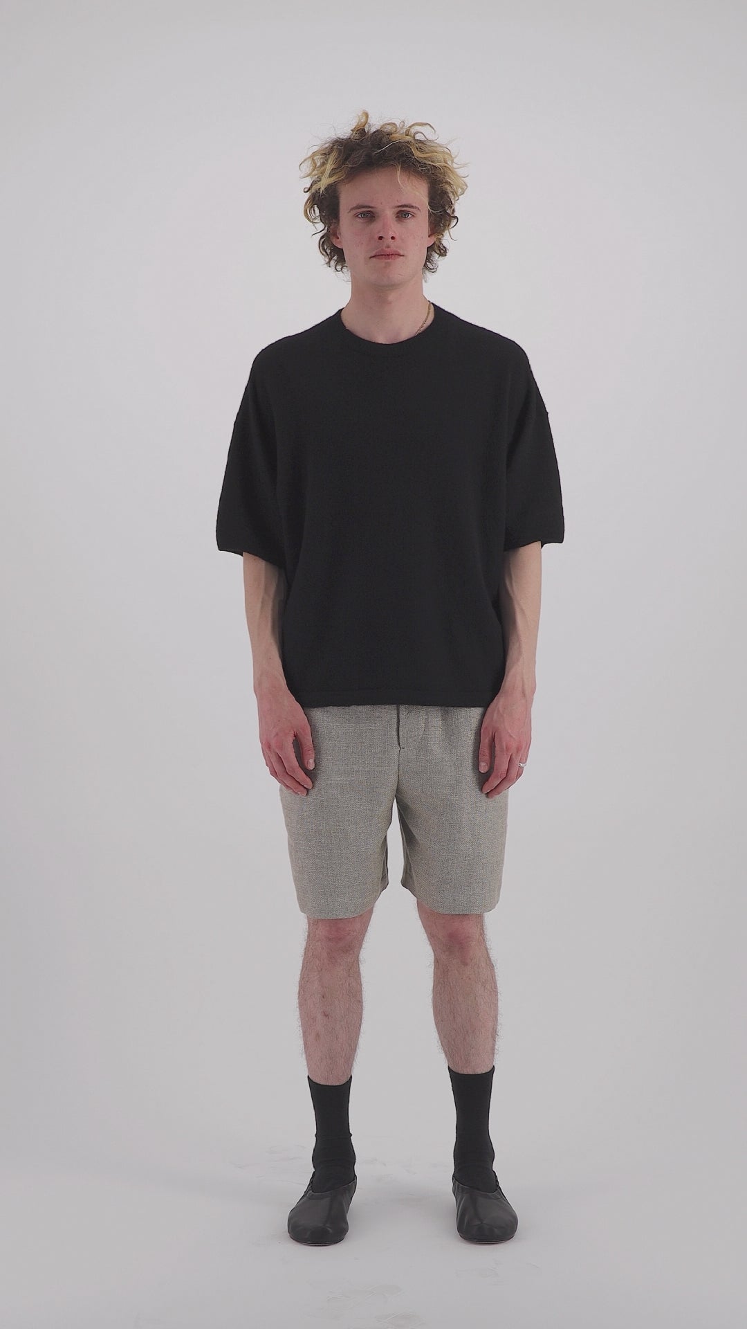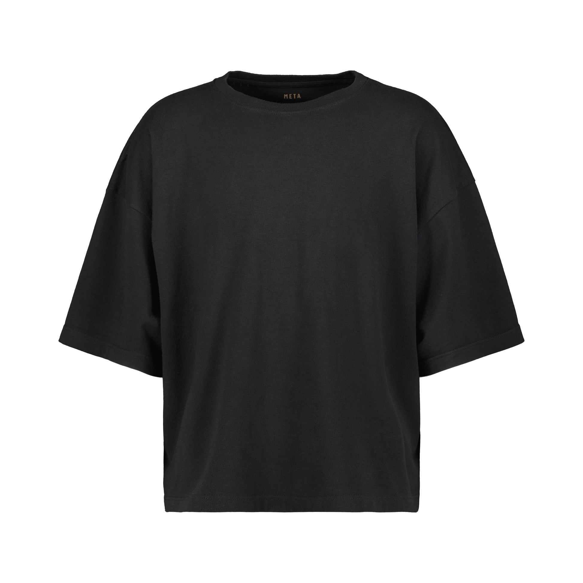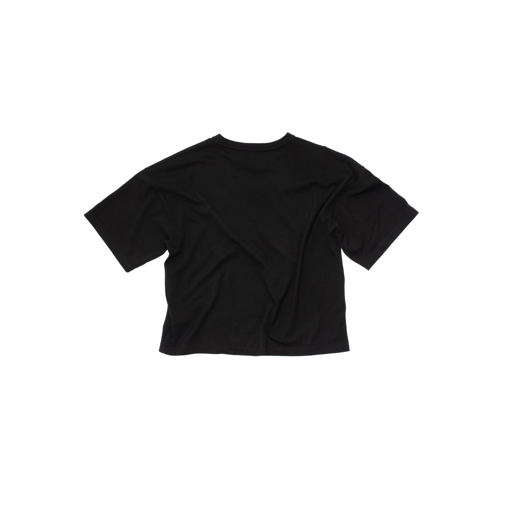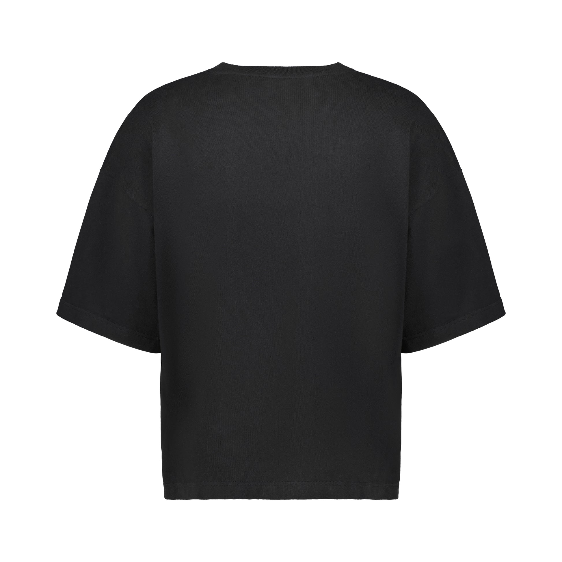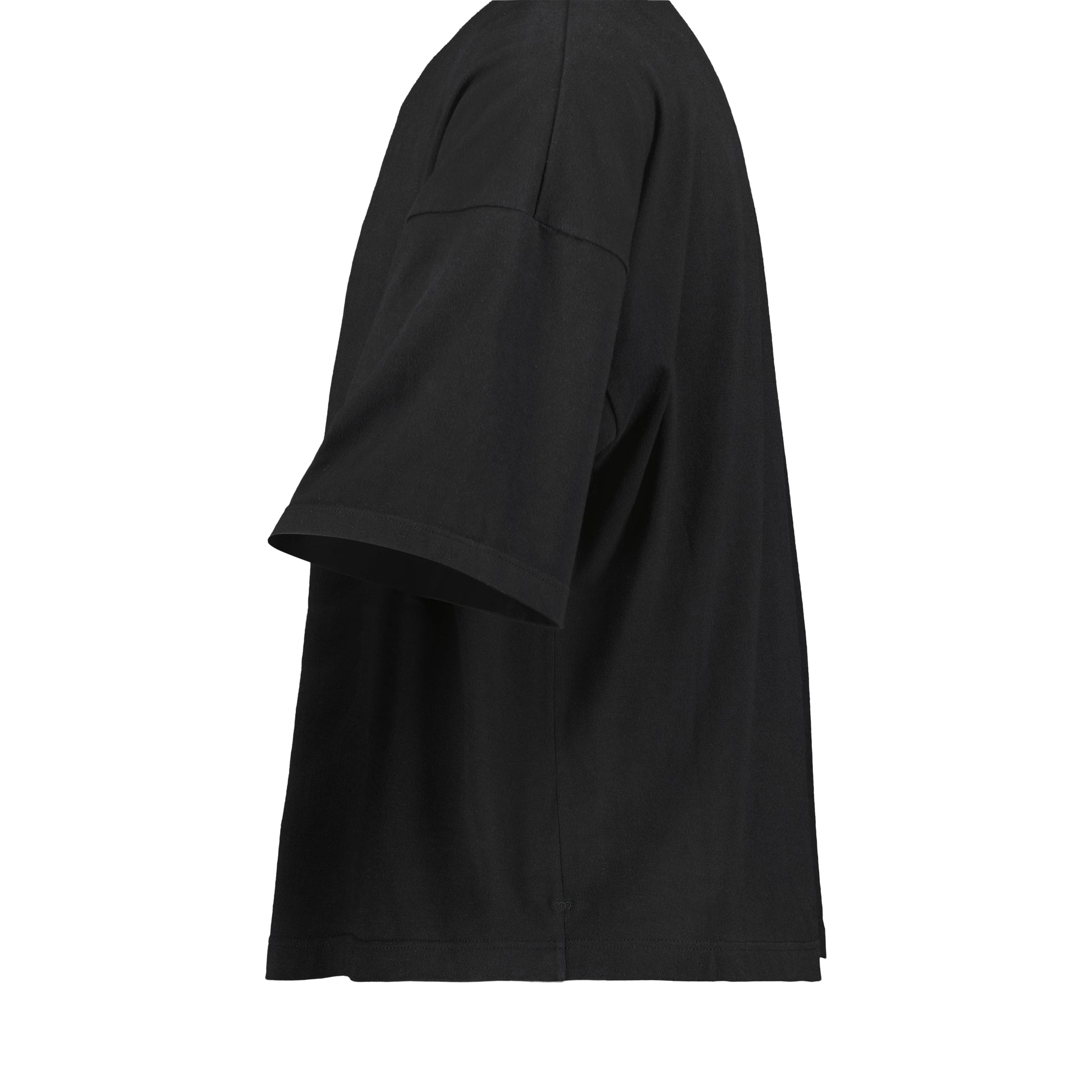 This t-shirt is made of a mid-weight Italian jersey. It has a dropped shoulder and falls loose. The body is slightly cropped. The crew neck is fitted and ribbed.