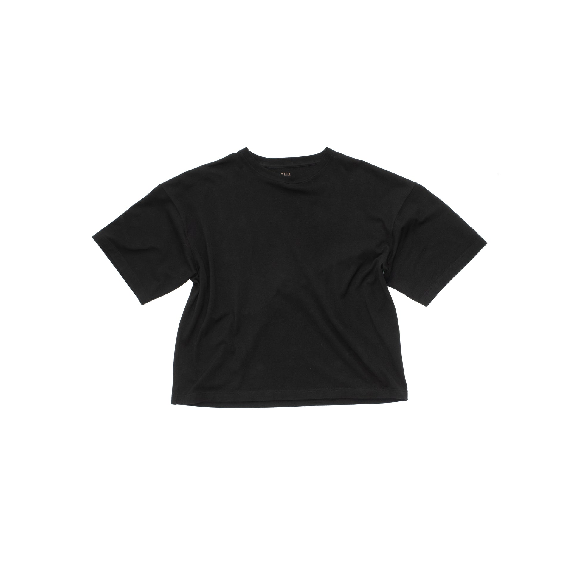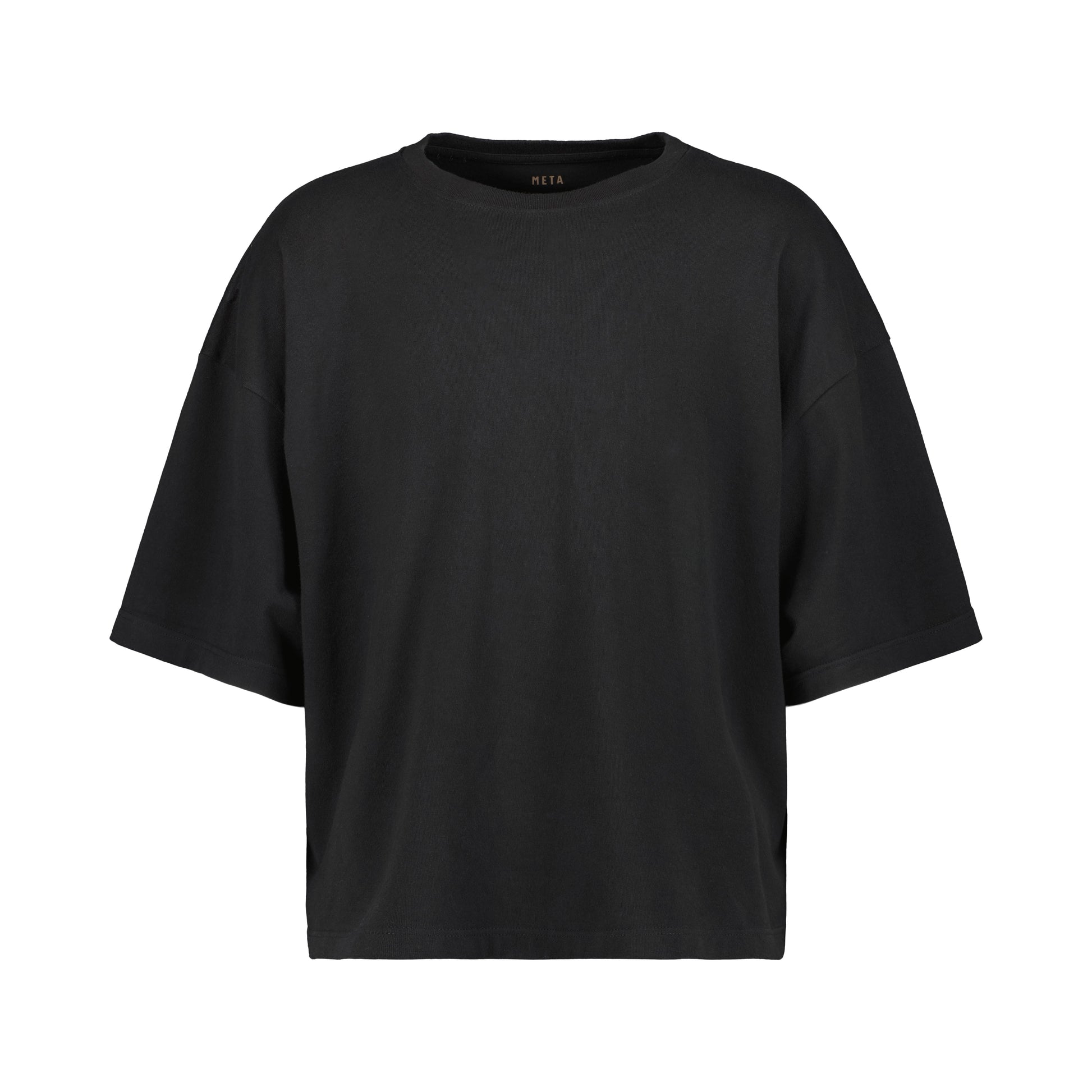 The Meta Campania Collective label is printed inside the neck and purposefully visible through the t-shirt.