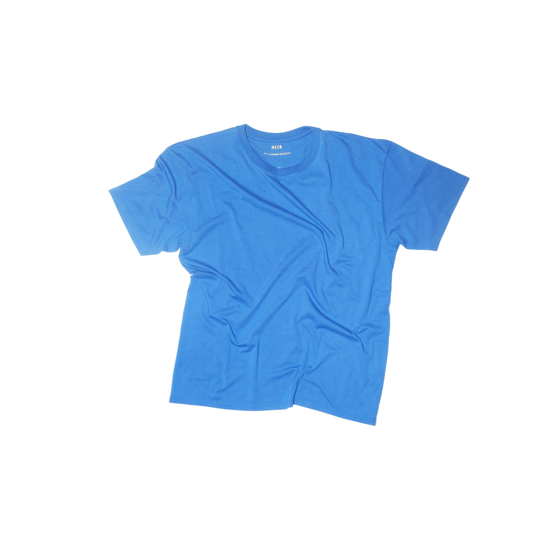 The Meta Campania Collective label is printed inside the neck and purposefully visible through the t-shirt.