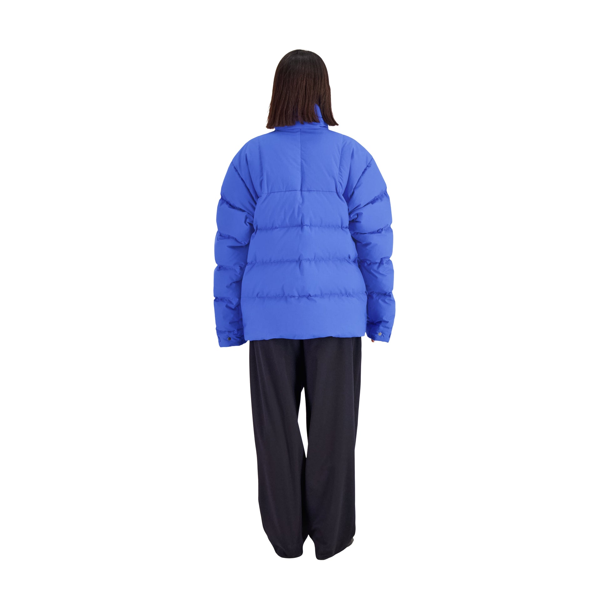 This down-filled bomber jacket is made out of a water repellent organic Italian cotton fabric and is self lined in a contrast colour.