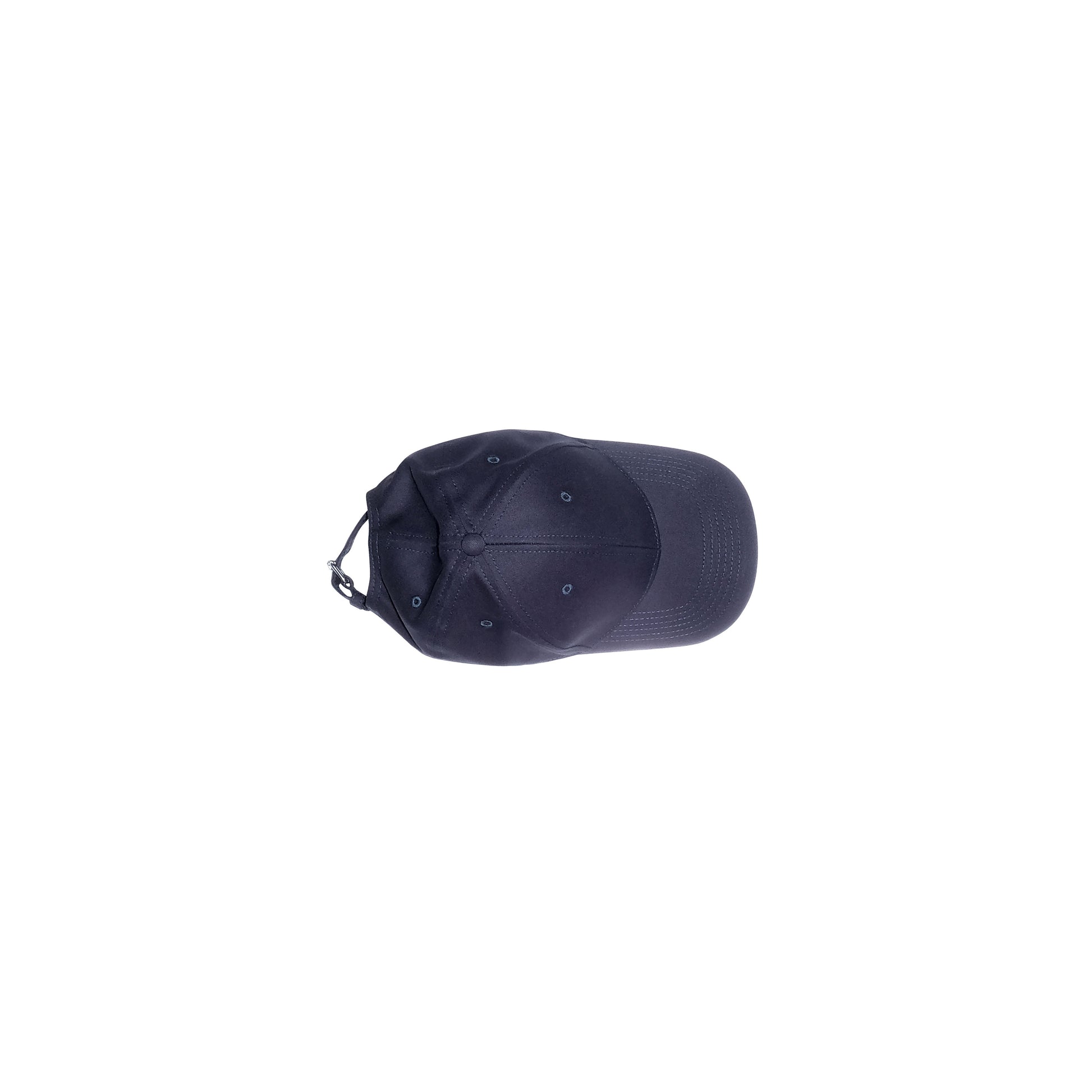 The two front panels are re-inforced and tonal embroidered eyelet vents are at the crown. It features a self fabric cinch strap with tonal embroidered eyelets and a silver tone brass buckle to allow for adjustment.