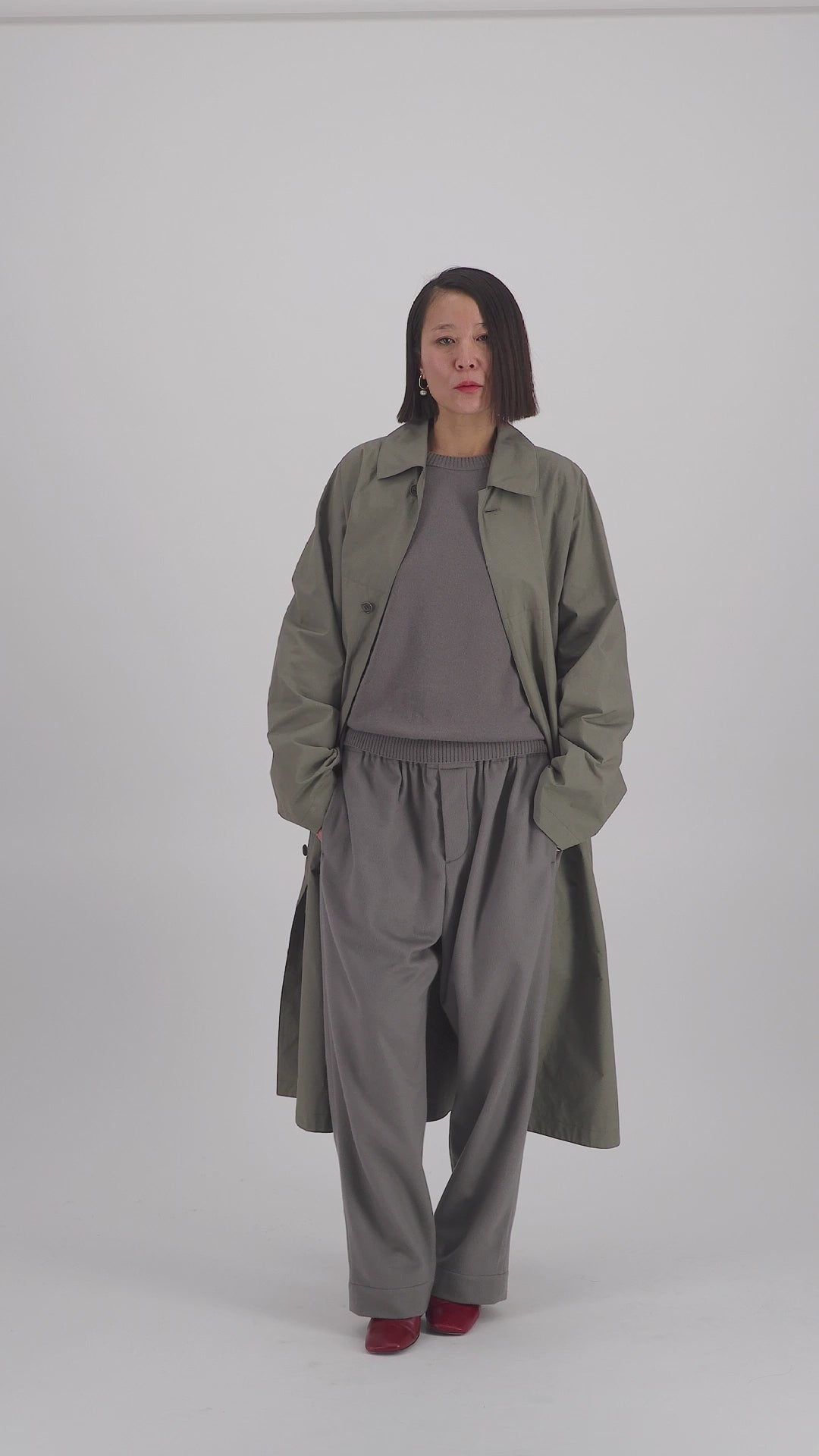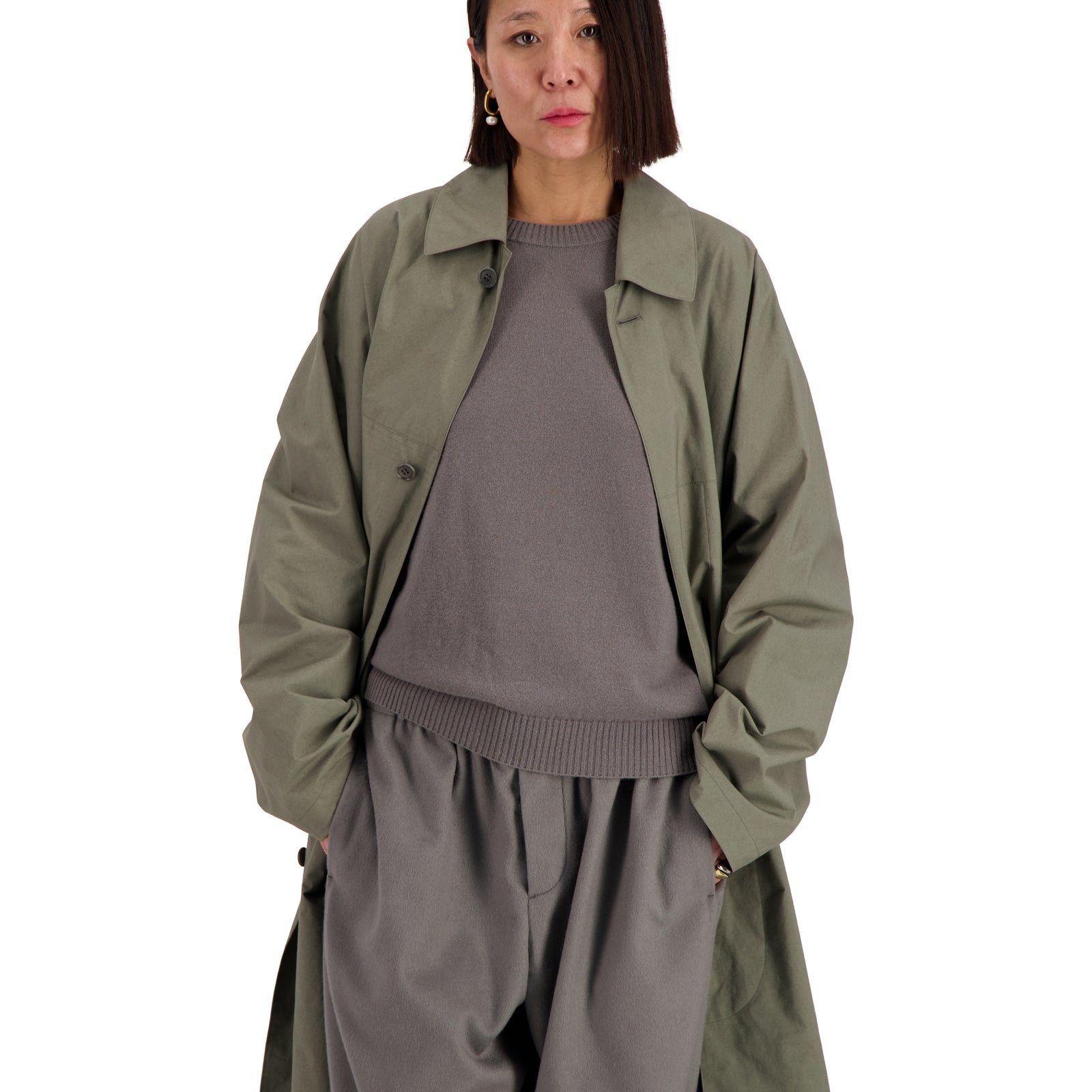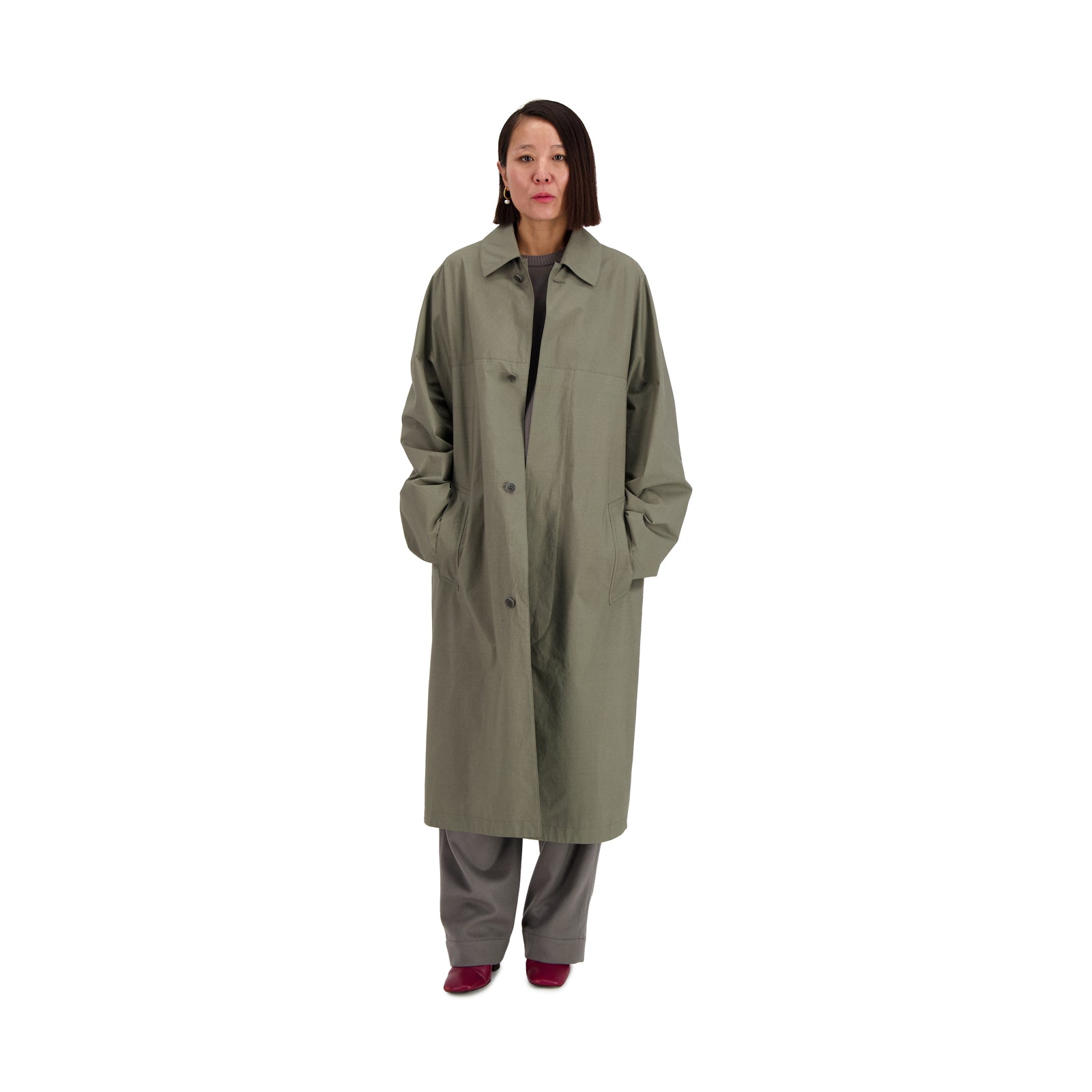 This car coat is made out of a waterrepellent organic Italian cotton fabric and is self lined in the same fabric.