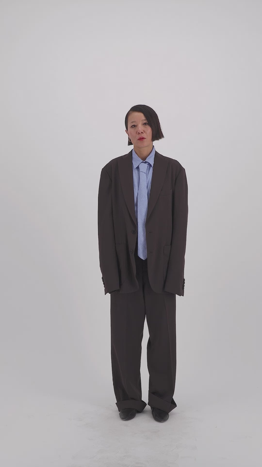 The jacket has complete uncontructed shoulders and features a notch lapel.