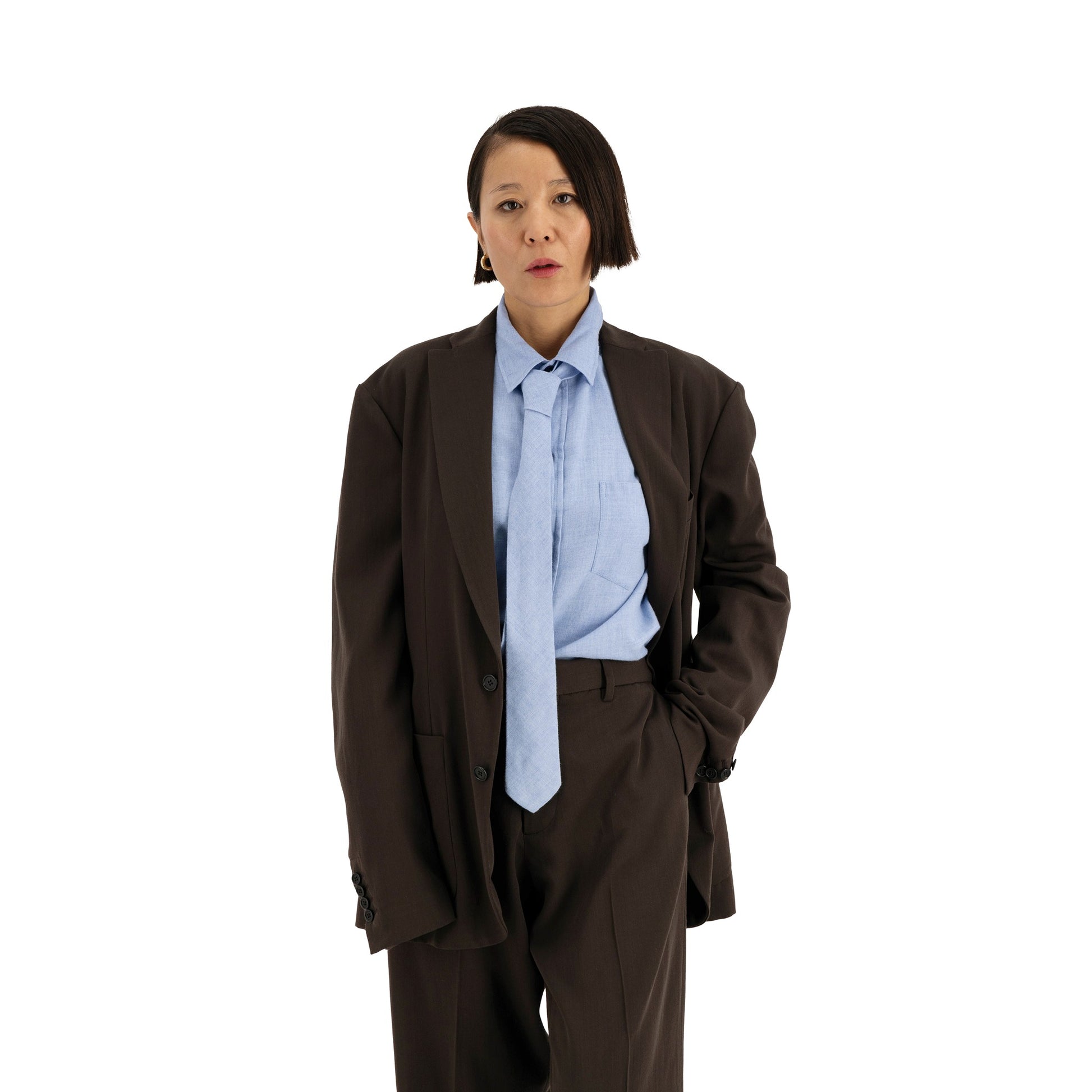 Udo Unlined Tropical Wool Twill 2 Button Notch Label Jacket Dark Chocolate Brown